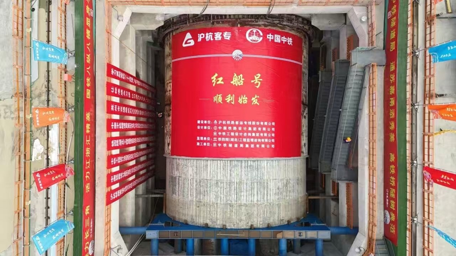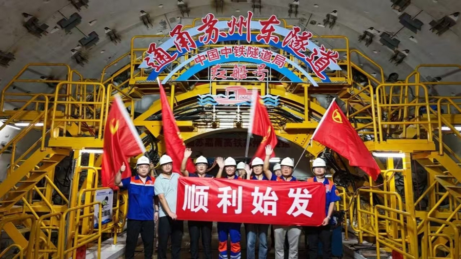 日前,在苏州市吴中区甪直镇5号竖井内,随着“红船号”盾构机刀盘开始缓缓转动并推进,由中铁隧道局施工承建的通苏嘉甬高铁苏州东隧道盾构区间正式开启掘进之旅,标志项目建设取得新进展。