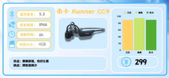 从配置和体验感来看,南卡RunnerCC4是南卡的用心之作,价格也相当实惠,是骨传导耳机当中的入门首选。