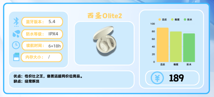 作为开放式耳机领域的“平价黑马”,西圣 Olite2 以百元出头的售价打破了人们对高音质耳机的固有印象。凭借远超同价位的配置与音质表现,它在数码圈和运动爱好者中收获了极高人气,被誉为“开放式耳机高性价比天花板”。